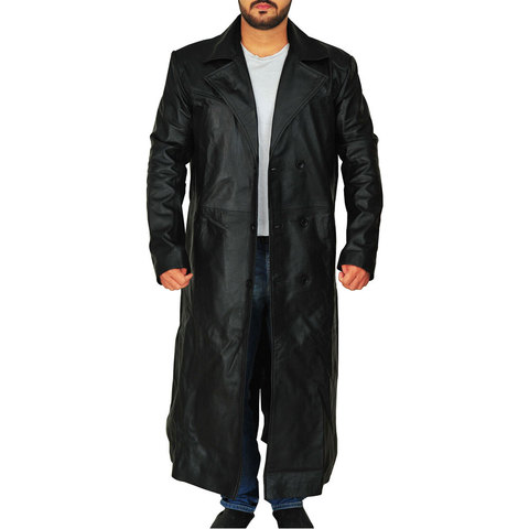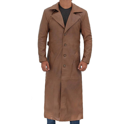 Gabardina larga para hombre de Venta caliente cuello levantado piel de vaca Cuero 100% transpirable precio razonable